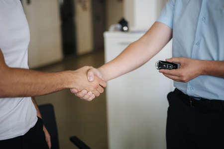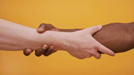 Close up of a handshake. Black and white hand, interracial friendship and cooperation concept.