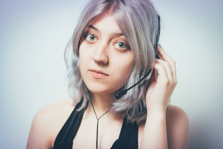 Friendly call center agent with headset in an office, ready to assist customers.