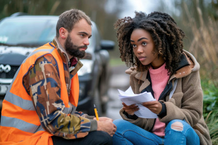 A insurance agent is looking at a car accident. Car insurance concept