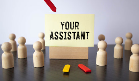 Your Assistant text on a sticker lying on a laptop on an office desk