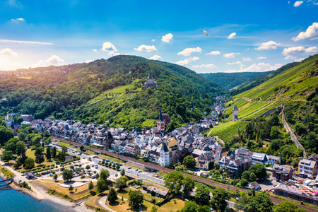 COCHEM, GERMANY - MAY 23 2019: View of the picturesque town Cochem with its famous imperial castle on top of the hill. Cochem is located at Moselle river in Rhineland-Palatinate, Germany.