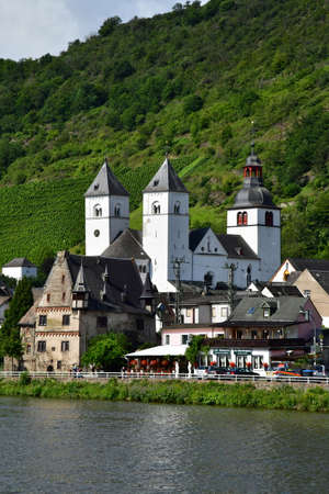 Zell, Germany - July 25, 2020: scenic view to village of Zell at the Moselle valley