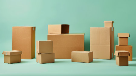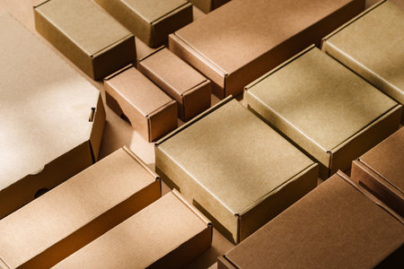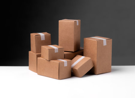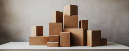 Multiple shipping boxes arranged neatly, plenty of empty space for text or logos.
