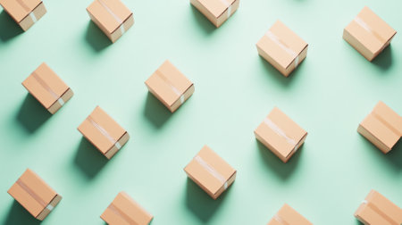 Cardboard boxes arranged in a pattern on light blue background, concept of shipping, AI Generated