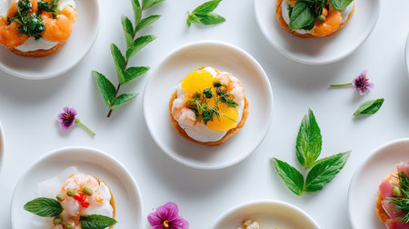 Elegant display of vibrant canap s and appetizers on a pristine white background