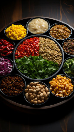 artisan pizza toppings arranged on a tray, created with generative ai