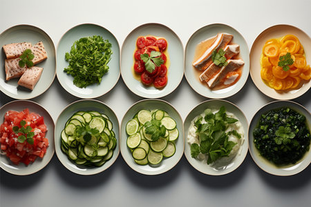 a variety of wholesome cuisine dishes a top view