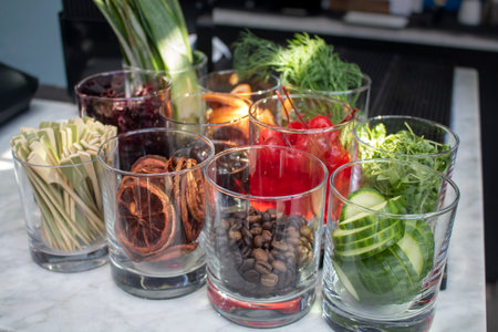 Condiments for bar drings in various glasses
