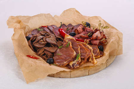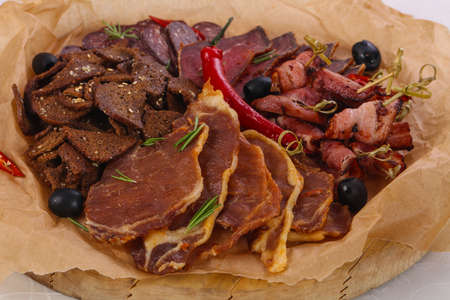 Meat snack plate for beer on the board
