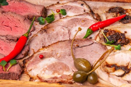 Big Slices of meat breakfast appetizer closeup