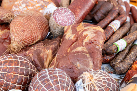 Sausage home made from farm meat on sunday market