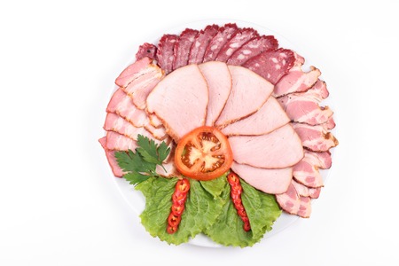 Various of meat, smoked meat, sausage, salami isolated on a white background.