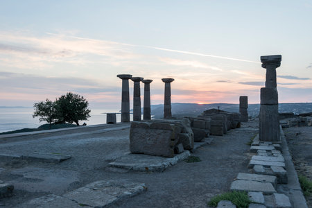 The Temple of Athena ruin in Assos Ancient City. The temple in Assos was built in 530 BC on the highest place of the Acropolis. Canakkale, Turkey.