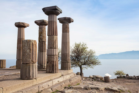 Ancient columns of Athena Temple in Assos, Canakkale, Turkey
