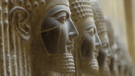 Detailed stone carvings of persian soldiers in traditional attire from persepolis