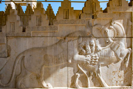 Persepolis, Iran - May 15, 2017: Walls of the ancient capital of Persia. Persepolis is the capital of the Achaemenid kingdom. sight of Iran. Ancient Persia. Bas-relief on the walls of old buildings.