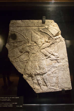 Vatican, Italy - January, 04, 2020. Ancient Mesopotamia bas-relief on display of the Museums of Vatican. The Museum holds one of the biggest collection of Ancient Mesopotamia art objects.