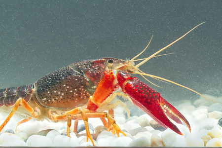 Portrait of procambarus clarkii, a freshwater crayfish species, native to the Southeastern United States, but found also on Europe, where it is an invasive pest