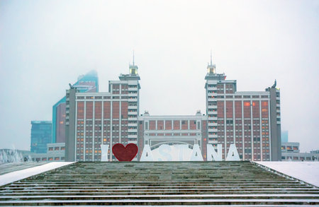 1 February 2017 Astana Kazakhstan: Inscription I love Astana, on the main square of the capital. Kazakhstan