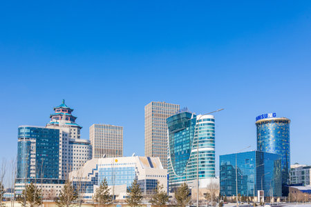 Astana, Kazakhstan - November 23, 2022: Modern city of Astana. Beautiful towers, glass skyscrapers and architecture of future in urban life. High quality photo