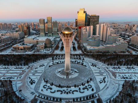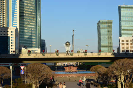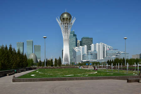 Nur-Sultan, Kazakhstan - View of of the city and the Baiterek Tower with its golden sphere in Nur-Sultan (Astana)