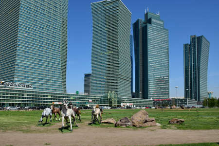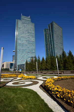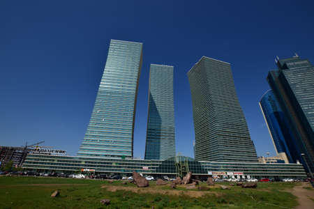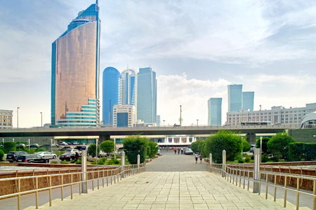WATER-GREEN BOULEVARD, ASTANA, KAZAKHSTAN JULY, 2015: View high-rise buildings on the water-green boulevard.