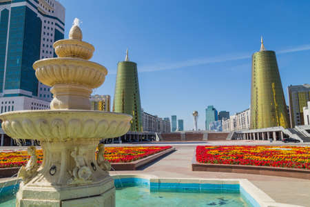 May, 3, 2021 - Nursultan, Kazakhstan: Golden towers in city centre of Kazakh capital city