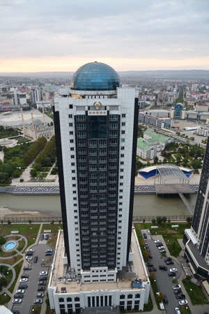Grozny, Russia - Sept 13, 2021: View on the skyscrape of the five-star hotel Grozny city in the center of the capital of the Chechen Republic in the Russian Federation