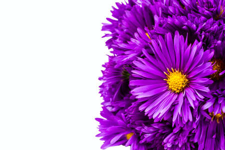 bouquet of beautiful purple chrysanthemums on a white background.