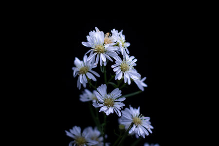 White daisies on a black background. Shallow depth of field