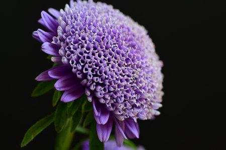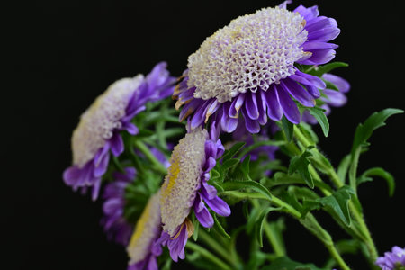 Bouquet of purple asters on a black background close up