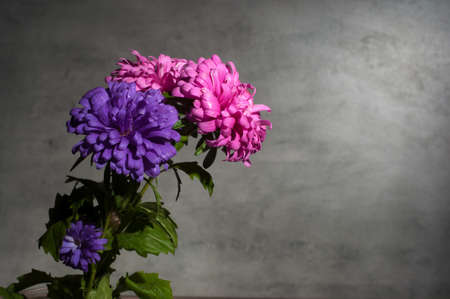 autumn chrysanthemums on gray background