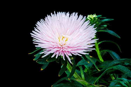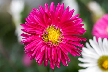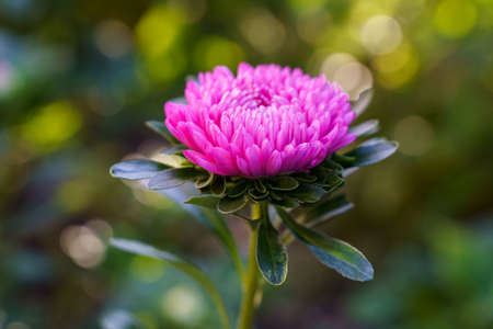 Astra pink flower macro shot natural light growing in the garden. High quality photo