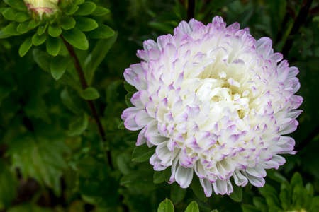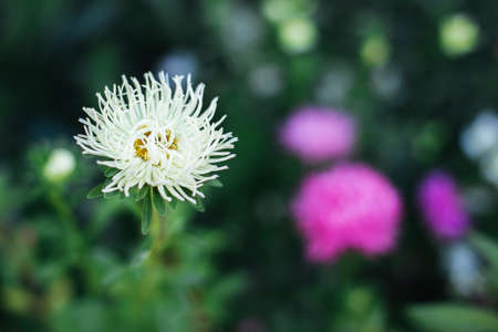 Beautiful white Aster flower in a autumn garden. Close-up.