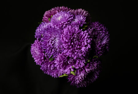 Bouquet of purple chrysanthemums on a black background