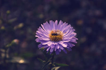 Purple aster flower close up. Aster on a blurred background.