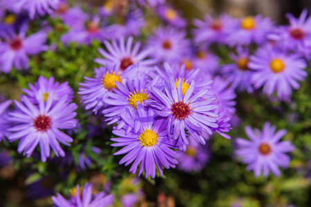 Magenta aster flowerbed under sunlight