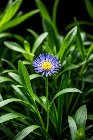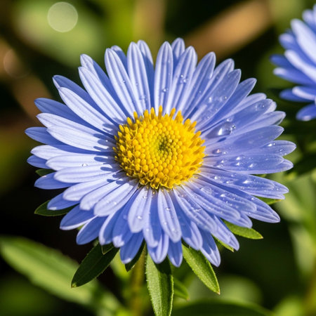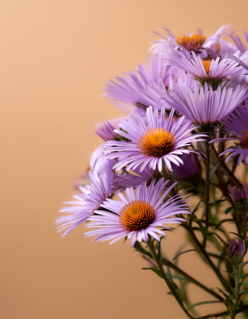 AI Generated. Aster blooms brightly in the autumn garden sunlight
