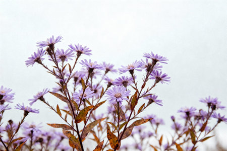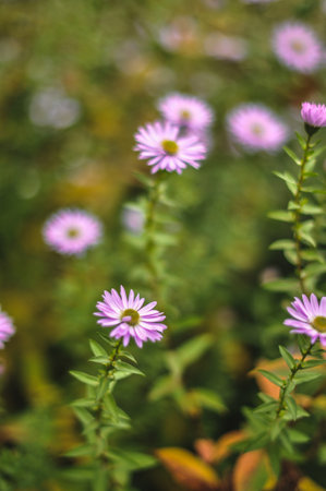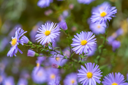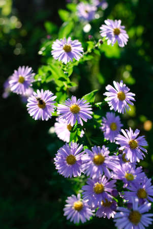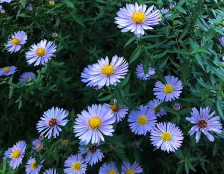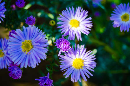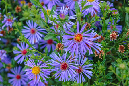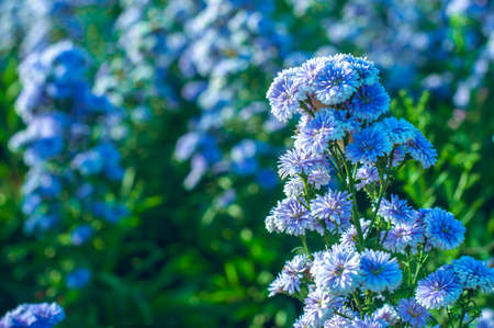 Beautiful flowers Sapphire Mist Aster in autumn garden