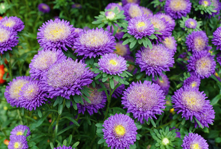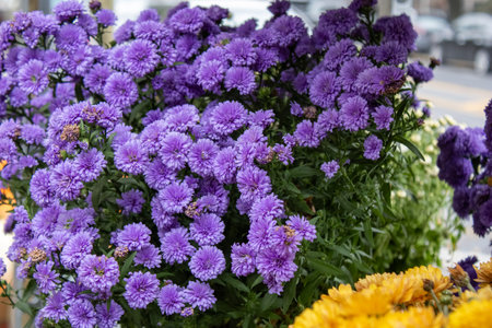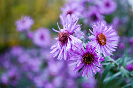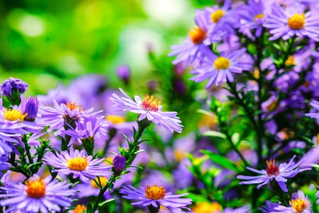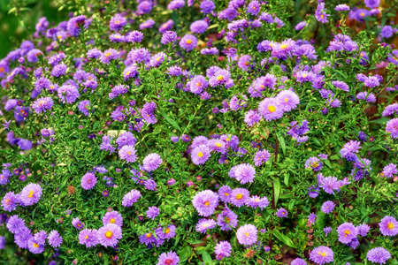 fresh bright autumn purple flowers with the Latin name Symphyotrichum novi-belgii in the garden