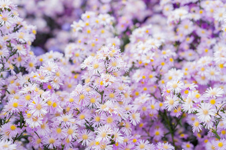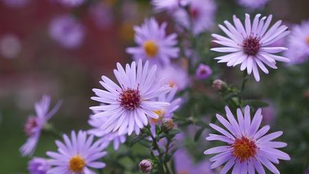 Beautiful blooming syphyotrichum flowers close up detail in Autumn
