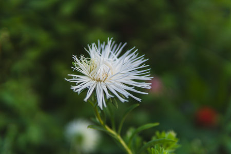 Beautiful white Aster flower in a autumn garden. Close-up.