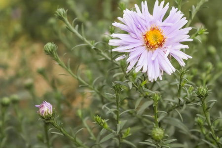 Purple Aster Flower Blooming on nature background. Aster is a Asteraceae family perennial flowering plant.