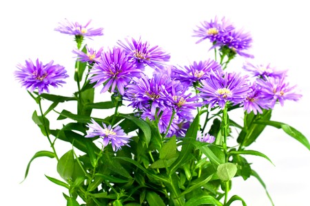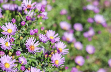 Small garden Astra flowers. Group of Alpine asters (Aster Alpinus)