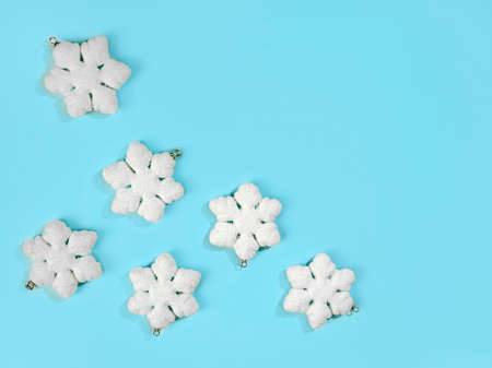 Plastic blue and white snowflake winter background