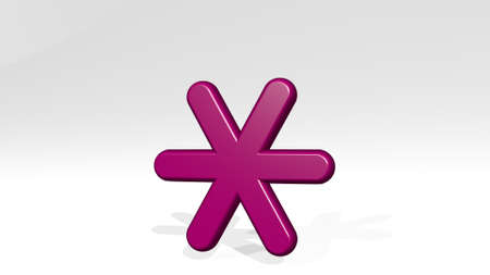 KEYBOARD ASTERISK from a perspective with the shadow. A thick sculpture made of metallic materials of 3D rendering. computer and business