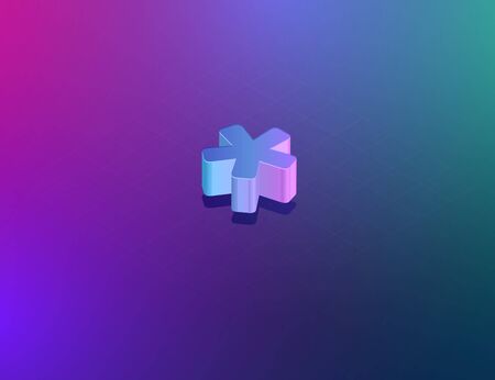 'THREE DEE' tech font asterisk sign character, isometric vector illustration