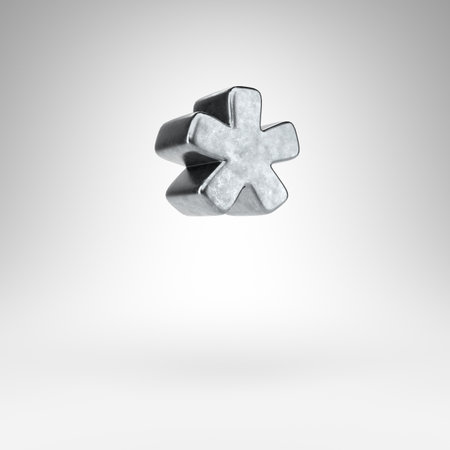 Asterisk symbol on white background. Gun metal 3D rendered sign with rough metal texture.
