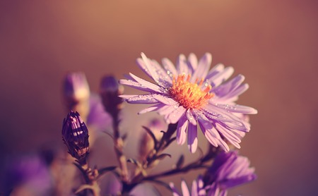 Aster flower in the meadow at sunset. Shallow depth of field