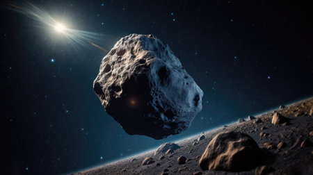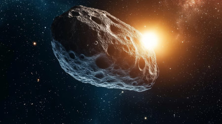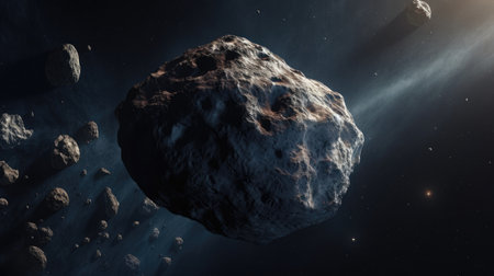 Big asteroid in the space. Potentially hazardous asteroids. Asteroid in outer space. International Asteroid Day. Generative AI